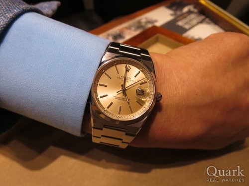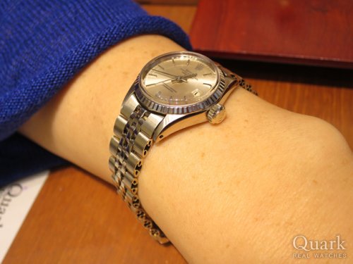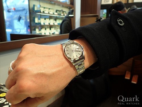いつもクォーク横浜店をご愛顧賜り誠にありがとうございます。相変わらずI様のお話しは楽しくて、時間が経つのがあっという間でした。オイスターデイトRef.6694は、グレー文字盤のカラーリングが絶妙で、定番カラーのシルバーとは雰囲気が全く違いますね。私も個人的に大好きな雰囲気なので、ロレックス好きのI様のお目にかけていただいて本当に嬉しく思います。お洒落なI様ならこの時計を更に素敵に着けこなしていただけると思います。レザーベルトとの相性も良いですのでお試しください。これまでのロレックスの中でも年式の古い時計になりますので、少しでも不安な事がございましたら遠慮なくお申し付けくださいませ。今後ともよろしくお願いいたします。 クォーク横浜店 長本