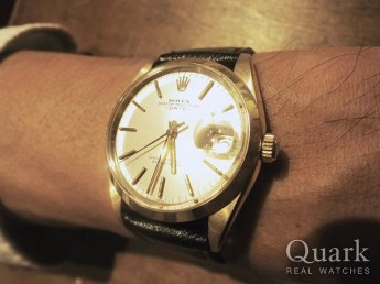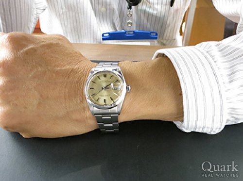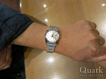 前からアンティークモデルが欲しかった。友人が品数の多いクォークを薦めてくれて、伺った際、担当の門脇さんの対応が良かったのが購入の決めてです。価格は手頃で、状態のいいアンティークモデルがあったのと、またアンティーク独特の劣化による退色具合も気に入りました。Ref.5500のエアーキングとも迷いましたが、雰囲気はRef.1500の方が好きだったので、価格は少し高くなりましたがRef.1500に決めました。
