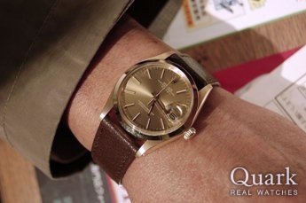 K様  日頃より私共クォークをご利用頂き、誠に有難う御座います。この度ご購入頂きましたRef.1500/7は、14KYGで御座いますので、K様の仰られます通り、柔らかい輝きが派手すぎず、さり気なくご使用頂ける事と思います。また、シャンパンがかったシルバー文字盤も、現行モデルには無いお色目で、とても雰囲気の良い1本ですね。是非、これから毎日ご愛用頂けましたら幸いです。近くにお越しの際や、メンテナンスのご依頼等、何か御座いました際には、お気軽にご来店、ご連絡ください。今後とも、どうぞ宜しくお願い致します。 クォーク仙台店 麻生