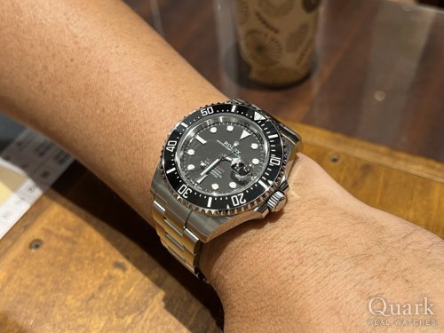 K様、この度はクォーク銀座店をご利用いただき誠にありがとうございます。お選びいただきました「Ref.136668LB」は、2024年新たに追加されたゴールド素材のディープシーとなり、発売から流通量の少ないモデルとなっております。イエローゴールド×ブルーの組み合わせがとても素敵ですね!本日お召しになられていたアクセサリーとも相性抜群で、弊社でも女性の方のご購入は初めてだと思います。末永くお使いいただけましたら幸いです。また時計のことで何かありましたらお気軽にご相談くださいませ。今後ともよろしくお願い申し上げます。 クォーク銀座店 寺田