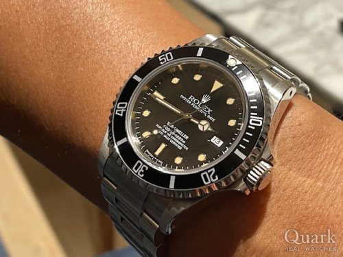 しっかりと色づいたトリチウム夜光に、先端ドット秒針、ブラックダイヤルのツヤが薄れ表面には程よい