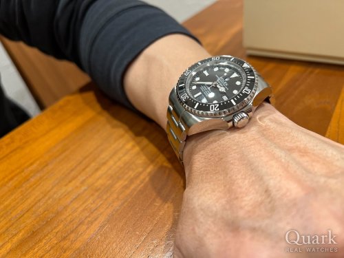 I様、この度はクォーク仙台店をご利用いただきまして誠にありがとうございます。I様がお選びになられた「Ref.116660」は、ロレックス最大径の44mmを誇る、防水機構「リングロックシステム」により、機械式時計最高峰となる3900m防水を実現したプロフェッショナルダイバーズモデルでございます。大きめサイズのお時計をお探しになられていたI様におかれましても、ディープシーだからこそのボリュームのある着用感や、ディープシーのみに採用される「Dブルーダイヤル」を十分にお楽しみいただけるものと存じます。末永くご愛用いただけましたら幸いでございます。また、ご使用に際して気になる点がございましたら、しっかりサポートさせていただきますので、お気軽にお申し付けくださいませ。尚、私どもではブレス洗浄サービスを行っておりますので、仙台駅方面へお越しの際は、是非お立寄りくださいませ。どうぞ、今後とも変わらぬご愛顧を賜ります様、宜しくお願い申し上げます。 クォーク仙台店 沼澤