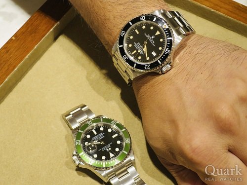A様、いつもクォークサロンをご利用頂き、誠にありがとうございます。短期間の間に早くも5本目!タイミング良く?(笑) A様のお好みに合う時計をご紹介できて良かったです。手巻きデイトナ、エルプリメロ、現行モデルと揃えられたこともあり、しばらくはクロノグラフ以外でとの事でしたが今回のトリプルシックスはまさにA様にピッタリではないかと思いました!グリーンサブ同様、今後の動向が気になるモデルですのでガンガンご使用頂きながら相場の変動も楽しんで頂ければ幸いでございます。また面白い時計が入荷しましたらご連絡させて頂きます。引き続きクォークサロンを宜しくお願い致します。 クォークサロン大阪 佐野