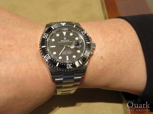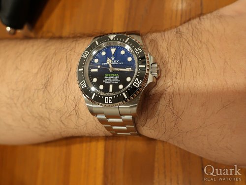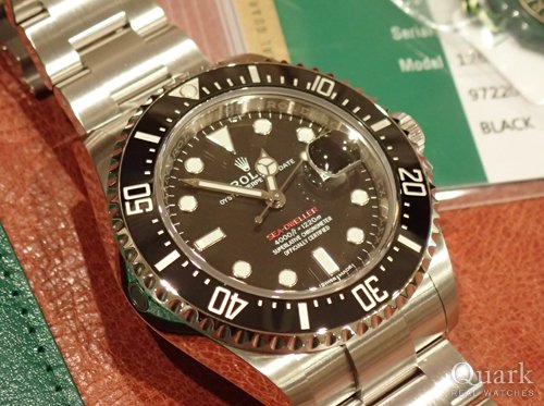 S様、この度はクォーク仙台店をご利用いただきまして誠にありがとうございます。S様がお選びになられたモデル「Ref.126660」は、ロレックスの数あるモデルの中で最大の防水性3900mmを誇るプロフェッショナルダイバーズウォッチです。その防水性を維持するために設計されたと思われるケース径44mmとボリュームある厚みもトップクラスの大きさでとても迫力がございます。すでにダイバーズウォッチのシードゥエラーをご愛用されているS様におかれましても、サイズ感はもちろんのこと、ディープシーのみでしか味わえないグラデーションが綺麗な「Dブルー」ダイヤルを、新鮮味ある感覚でお楽しみいただけるものかと存じます。末永くご愛用いただけましたら幸いでございます。また、お褒めのお言葉をいただきましたこと、重ねて御礼申し上げます。今後もS様のご期待に応えられるよう、日々精進して参ります。尚、私どもではブレス洗浄サービスを行っておりますので、仙台駅方面へお越しの際は、是非お立寄りくださいませ。どうぞ、今後とも変わらぬご愛顧を賜ります様、宜しくお願い申し上げます。 クォーク仙台店 沼澤