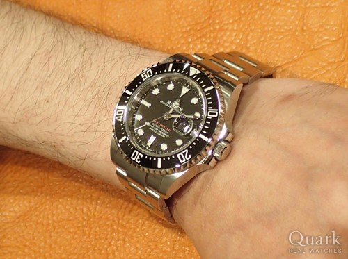 当初はサブマリナーが気に入っていたが、それよりもシードゥエラーが上位機種であることを知り、こちらを購入しました。