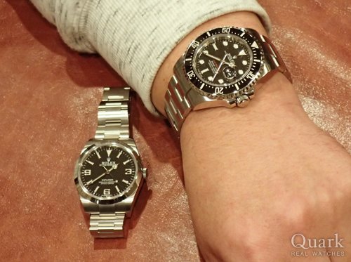 M様、いつもクォーク心斎橋店をご利用いただき、誠にありがとうございます。M様所有の3本のロレックスはケースも大型のものばかりで圧巻です。今回ご購入いただいたDEEPSEA DブルーダイヤルRef.126660は44mmでロレックスの中でも一番大きなケース径のスポーツモデルで、M様に大変お似合いでございました。ブレスレットの洗浄、調整は無料で対応しておりますので、お近くにお越しの際はお気軽にご利用くださいませ。なお、全国どこの店舗でもしっかりサポートさせて頂きますので、今後ともクォーク心斎橋店をよろしくお願いいたします。