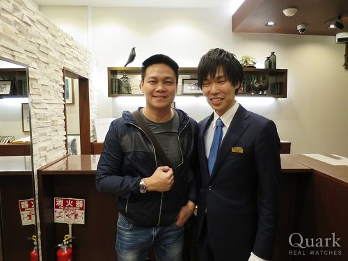 U様 いつも弊社をご利用頂きまして誠に有難うございます。即決でお選びいただいた新型赤シードがU様の腕に抜群にフィットしており大変お似合いでございます。ブレスレット洗浄等また近くにお越しの際にお時間ございましたらお立ち寄り下さいませ。今後共クォーク梅田店を宜しくお願い申し上げます。
