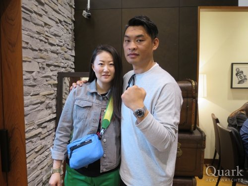 Thank you for stopping by our store and purchasing the watch. It looks really nice on you, and the picture is also cool. I hope you are satisfied with the watch. The watch you purchased at this store is really popular and hard to purchase. Finally, regarding the cleaning, we offer the complimentary service which is cleaning your watch bracelet and case. Please stop by our store when you come to Tokyo next time. Look forward to seeing you.