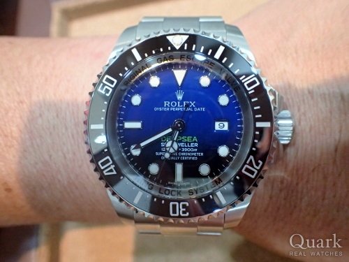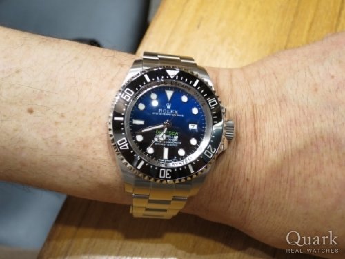 M様、この度はクォークなんば店をご利用頂きまして誠に有難うございます。数ある時計店の中から当店をお選び頂けました事、本当にご縁だと私も嬉しく思っております。グラデーションになった文字盤の美しさや44ミリケース径の迫力など、魅力に溢れたディープシー Dブルー、M様にとてもお似合いでございました!これからのロレックスライフをサポートさせて頂きますので今後とも宜しくお願い致します。またブレスレットの洗浄がてら、なんば店にお越し頂けるのを楽しみにしております。  クォークなんば店 堀家