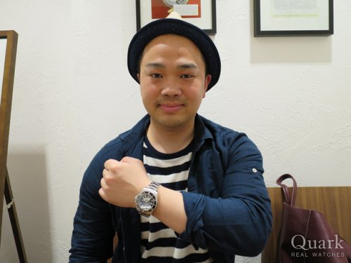 N様 この度はクォーク名古屋店をご利用頂き、誠にありがとう御座います。また、ご遠方から何度かお越し頂き、重ねてお礼申上げます。色々なモデルと悩まれましたが、その中でご案内をさせて頂いたDブルーが一番N様の心を鷲掴みにしましたね。所有されている方も少ないDブルーの特別感を存分に堪能して下さい。気にされていました存在感のあるサイズは、N様の腕にとても似合っておりましたので、全く問題御座いません!N様とは共通点も多く、とても楽しい時間を過ごさせて頂きました。今後も末長くご愛用頂ける様、私も最大限サポートさせて頂きますので、お気軽にご相談下さいませ。栄にお立寄りの際は、遊びにいらして下さい。また、N様にお会い出来る日を楽しみにしております。