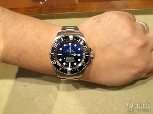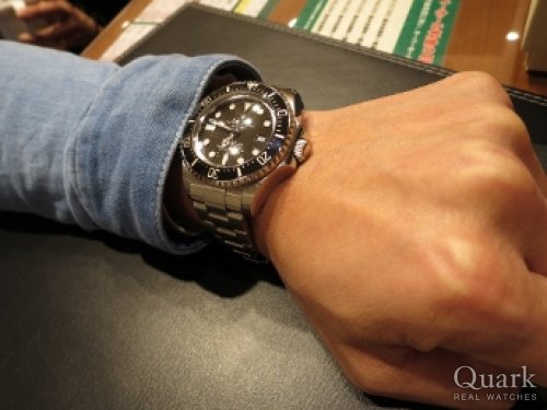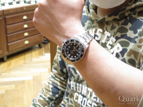 他のモデルと比べても別格な迫力のディープシーが着け応え抜群!またダイヤルはブラックよりもブルーグラデーションの方がカッコよくて自分好みでした。最終的には新品を翌日に取り寄せ出来た事とスタッフに背中を押されたことが即決のポイントでした。