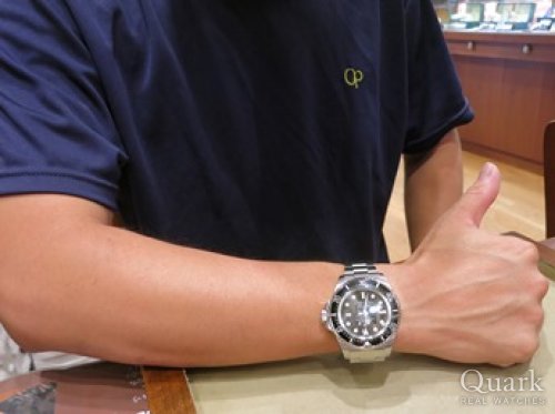 M様  この度は、心斎橋店にてご購入頂き本当にありがとうございました。M様の仰るようにディープシーは非常に存在感のある特別なモデルでございます。画像からも判りますが、M様の雰囲気にピッタリでございました。今後も、アフターメンテナンスを含めしっかりと対応させていただきますので、末永いお付き合いをよろしくお願い致します。   クォーク心斎橋店 中野