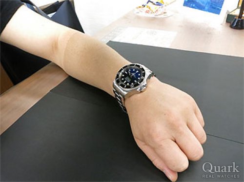 A様 この度はクォーク仙台店をご利用くださいまして誠にありがとうございます。現物を見ずに購入を決断するには勇気が必要ですね。実際に商品が届き、A様の笑顔を拝見でき、私もホッと致しました。こちらのDブルーのグラデーションやブルーの色目は美しく、逞しいボディーとのギャップが魅力の深みを強く感じます。なかなか欲しくても入手が難しいモデルですので、他の人と被らないという点も魅力ですね!近くへお越しの際は是非お店へ遊びにいらしてください。ご感想をお聞かせくださいませ。今後とも末長いお付き合いの程、宜しくお願い申し上げます。