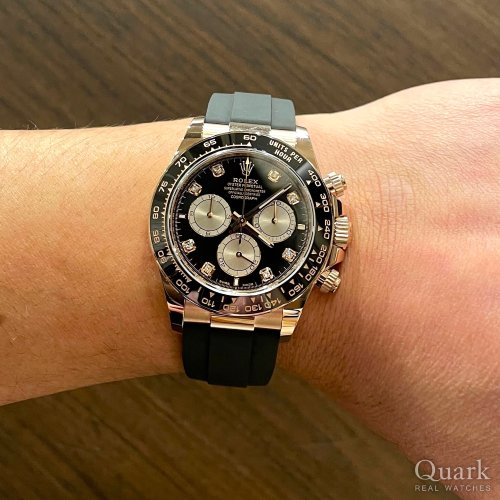 S様、いつもクォーク仙台店をご利用いただきまして誠にありがとうございます。この度S様がお選びになられた『Ref.126519LN』は、デイトナ誕生60周年の節目に行われた新作発表にて登場した重厚感がある18Kホワイトゴールド×スポーティなオイスターフレックスブレスを組み合わせた大人気モデルです。ダイヤルはシックな印象を持つブライトブラック&スチールですので、カジュアルからフォーマルまで幅広いシーンでご使用いただける汎用性の高さも魅力的です。加えまして、個人的にはダイヤル表面の仕上げ方が、塗料質ではないサンレイ仕上げである点も『Ref.126519LN』の高級感を引き立てる重要なポイントだと思います。これからキングオブロレックス『デイトナ』の存在感を十分にお楽しみいただき、末永くご愛用いただけましたら幸いでございます。尚、ご使用に際して気になる点がございましたら、しっかりサポートさせていただきますので、お気軽にお申し付けくださいませ。どうぞ、今後とも変わらぬご愛顧を賜ります様、よろしくお願い申し上げます。
