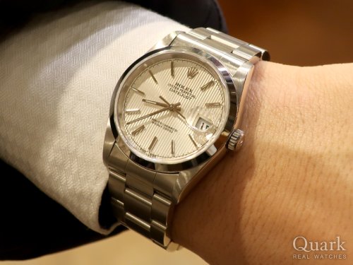 Y様、この度は私どもクォーク仙台店をご利用くださいまして誠にありがとうございます。この度Y様がお選びになられた『DATEJUST Ref.16200』は、滑らかなスムースベゼルとオールステンレスが特徴の堅牢でシンプルなモデルです。前型で採用されていたプラスチック風防・Cal.3035から、それぞれサファイアクリスタル風防・Cal.3135へ変更された事で、より耐久性やメンテナンス性、精度を向上させたモダンな仕様の1本です。また、シルバータペストリーという縦のストライプ模様が特徴的な希少ダイヤルで、通常のシルバーダイヤルよりも、更に引き締まった印象を持ち、立体的な高級感を腕元で演出してくれる、オンオフ問わず着けられる1本ですので、末永くお楽しみいただけますと幸いです。尚、アフターサービスなどの面でもしっかりとサポートいたしますので、気になる事などございましたらお気軽にご相談くださいませ。これからも末永いお付き合いのほど、よろしくお願い申し上げます。