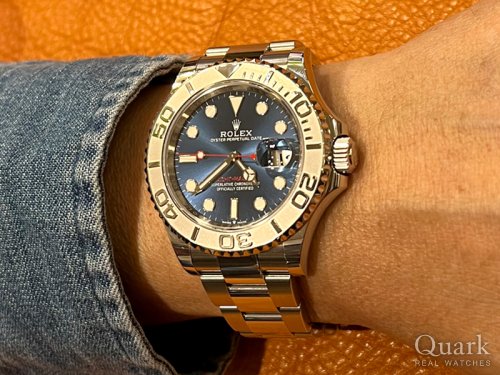 A様、この度はクォーク仙台店をご利用いただきまして誠にありがとうございます。この度お選びいただきました『YACHT-MASTER Ref.126622』はヨットでリゾートを楽しむセレブリティをターゲットに発表された高級モデルで、ラグジュアリーとスポーティを併せ持った、まさにラグスポと呼ぶに相応しいラインナップです。プラチナベゼルはサンドブラスト仕上げの中に、ポリッシュされた数字や目盛りが立体的に立ち上がり、高級感のある華やかな印象を纏っています。また、海を思わせる鮮やかなブルーダイヤルは光の当たる角度によって様々な表情を見せてくれる、爽やかで美しいお色味です。秒針やモデル表記の赤い差し色も絶妙ですね。内部機械には、新世代キャリバーのCal.3235を搭載しており、耐衝撃性や耐磁性においてもブラッシュアップが図られております。A様の腕元にとてもお似合いの1本でしたので、是非末永くご愛用いただけますと幸いです。今後のアフターサービスにおいても、更にご満足いただけますよう一層精進して参る所存でございますので、ご使用に際して気になる事などございましたら、お気軽にお申し付けくださいませ。末永いお付き合いのほど、よろしくお願い申し上げます。