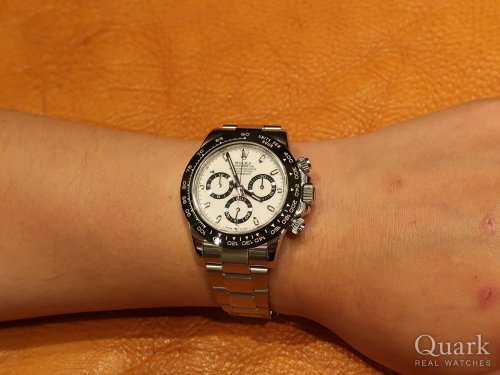 いつもクォーク仙台店をご利用いただきまして誠にありがとうございます。お褒めのお言葉大変恐縮です。今回は「Ref.116500LN ホワイト」をご購入いただきまして重ねてお礼申し上げます。ホワイトダイヤルならではの爽やかさと、ベゼルのブラックとの絶妙なコントラストは、スーツスタイルからカジュアルまで幅広くお使いいただけますね。また、今後のメンテナンス等につきましても、ぜひお気軽にお申し付けください。引き続きロレックスライフをお楽しみいただけるよう、全力でサポートいたしますので、どうぞよろしくお願いいたします。