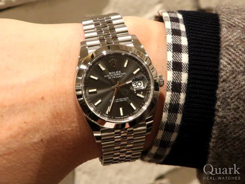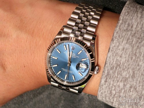 S様、いつもクォーク仙台店をご利用いただきまして誠にありがとうございます。S様がお選びになられた『Ref.126300』は、現行モデルに採用される最新ムーブメント『Cal.3235』を搭載して2017年に登場した大人気モデルです。機能面における前型からの大きな変更点としては、パワーリザーブが約48時間から約70時間に延長、日付早送り禁止時間帯が廃止となり、実用時計として更なる向上が図られました。お選びいただいたダイヤルは、『粘板岩』を意味する『スレート』で、グレーやシルバーとも一線を画す絶妙なトーンで落ち着きのあるお洒落なカラーでございます。今回はS様のビジネスにおける更なる飛躍の思いを込められてのご購入にて、再びご縁をいただき、微力ながらお力添えできましたことをとても嬉しく思います。