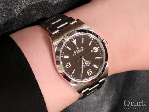 T様、この度は私どもクォーク仙台店をご利用くださいまして誠にありがとうございます。この度T様にお求めいただきました「EXPLORER I Ref.224270」は、2023年のモデル誕生70周年のタイミングで初登場した、40mm径の大型ケースを有するエクスプローラーでございます。シンプルで視認性の高いデザインは旧型モデルを踏襲しておりますが、ラグやブレスレット幅にも改良が加えられた他、リューズサイズが大きくなり、より使い勝手が良くなっております。また、新型キャリバーを搭載した事で耐磁性や精度、安定性など全体的なスペックが向上しているのは勿論、パワーリザーブも約70時間への延長を果たし、更に実用性が高くなりました。どれもさりげない進化に見えますが、ロレックスの絶え間ない革新を強く感じられる1本ですので、是非末永くご愛用いただけますと幸いです。なお、私どもではブレス洗浄サービスを行っております。お住まいこそご遠方ですが、仙台駅近くへお越しの際は是非お立ち寄りくださいませ。今後とも末永いお付き合いのほど、よろしくお願い申し上げます。