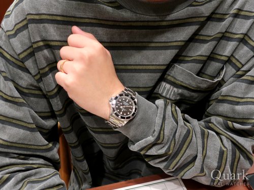 W様、この度は私どもクォーク仙台店をご利用いただきまして誠にありがとうございます。この度お求めいただきました『SUBMARINER Ref.16610』は、約20年間という長期間にわたって生産が続いたロレックス屈指の人気モデルです。アルミニウム製のベゼルディスクは独特の光沢感があり、味のある雰囲気やエイジングを楽しむことができます。また、全体的に細身で軽量なスタイリッシュさを有し、どのようなシーンでもご着用いただける1本となっておりますので、是非毎日お楽しみいただけますと幸いです!なお、仙台店では快適にお使いいただくためにブレスレット洗浄サービスを行っておりますので、お気軽にお申し付けくださいませ。今後とも末永いお付き合いのほど、よろしくお願い申し上げます。