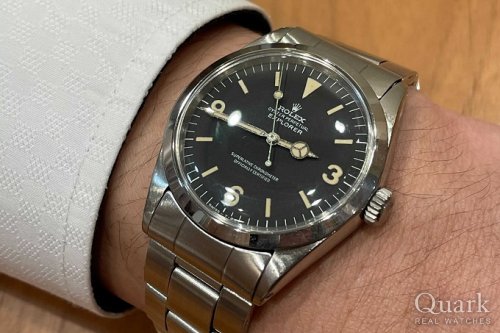 Ref.214270の中でも前期ダイヤル、後期ダイヤルがございますが、後期型は369インデックスに夜光塗料も入り、視認性も抜群ですね。コンディションの良い個体をご案内させていただくことができ、私も大変嬉しく思っております。39mm径のエクスプローラーIは長いエクスプローラーIの歴史においても、僅か1世代で生産が終了いたしましたので今後の動向にも要注目ですね。是非K様の相棒として末永くご愛用いただけましたら幸いでございます。新宿へお越しの際にはお気軽にクォーク新宿店までご来店くださいませ。今後ともよろしくお願いいたします。