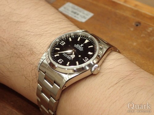 以前よりエクスプローラ1のシングルトリチウムのモデルを探しておりましたが、この時計はインデックス部分がほんのりとオレンジ色に焼け、とても良い状態でした。今後も大切に扱い、経年変化を楽しんでいきたいと思います。清水店長ありがとうございました!