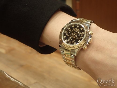 N様 いつもご愛顧頂きまして誠にありがとうございます。この度お求め頂きましたDAYTONAは豪華な18KYGにダイヤモンドが特徴のモデルでございます。ダイヤモンドが一番引き立つ黒の文字盤もシックで素晴らしい時計でございます。N様の華やかなご職業にもピッタリの1本でございますね。また気になるモデルがございましたらお気軽にお申し付けいただければと思います。今後共、末永いお付き合いの程、宜しくお願い致します。