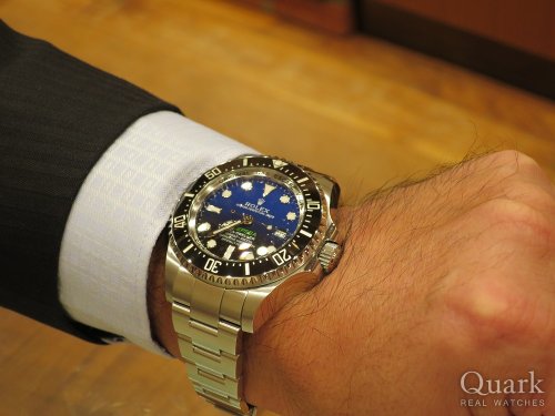 新デイトナをターゲットにしていましたが、今年スイスに出張して、ディープシーブルーダイヤルを見て、一目惚れしてしまい、購入タイミングを見計らっていました。意外にも大きさや厚みを感じる事なく、普段の使用にも適しており、何より圧倒的な存在感が気に入りました。