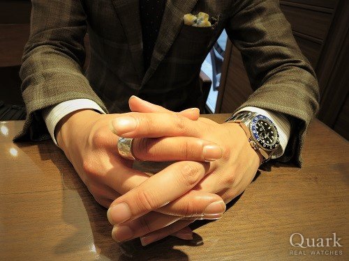 この度は、GMTマスターIIのご購入をいただき誠にありがとうございました。ご来店当日は素敵なスーツ姿でしたが、GMTマスターIIのラグジュアリー且つスポーティーな雰囲気を、上手にスーツやアクセサリーと合わせていただいていて感心いたしました。流石アパレルの方の着こなしは参考になります!次回はどんな着こなしでロレックスに更なる輝きを与えてくださるか楽しみにしております!ブレスの汚れが気になる際には、お気軽にクォーク店舗にお立ち寄りくださいませ。今後ともよろしくお願いいたします。