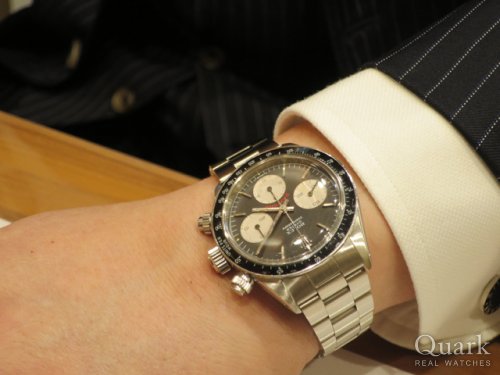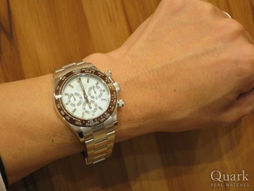 W様 いつも弊社をご利用頂きまして誠にありがとうございます。長期に渡りお待ち頂きましたW様に改めまして感謝申し上げます。ロレックスモデル最高峰のDAYTONAに、素材の最高峰プラチナ。更には11Pバケットダイヤが高級感を与えてくれます。私もここまで豪華な時計は扱いが多くございませんので、貴重な経験をさせて頂き嬉しく思います。また、普段お忙しいW様にとって、お正月の海外旅行も楽しんで頂ければと思います。ステンのデイトナの件の際は、また私、渡邉までお申し付け下さいませ。今後共、末永いお付き合いの程、宜しくお願い致します。   クォーク新宿店 渡邉