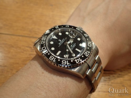 H様、この度は初めてのロレックスご購入に、クォーク心斎橋店を選んでいただき誠にありがとうございました。ご購入いただきましたGMT MASTER II Ref.116710LNは、ブラックに24時間針のグリーン色が差し色となりカッコいいモデルだと思います。是非ご愛用くださいませ。H様のお仕事場も私の自宅と近かったので遊びにいきますね。ブレスレットの洗浄、調整は無料対応しておりますので、お近くにお越しの際はお気軽にご利用くださいませ。なお、全国どこの店舗でもしっかりサポートさせて頂きますので、今後ともクォーク心斎橋店をよろしくお願いいたします。