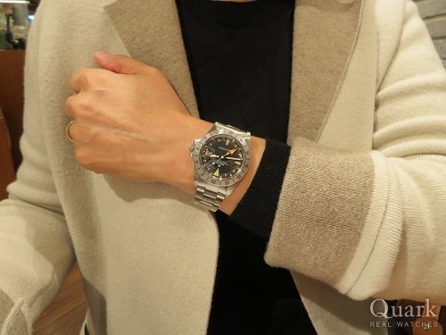 T様、この度はクォーク心斎橋店をご利用頂き誠に有難うございます。ドレッシーなデザインで大型のサイズ感がカッコいいモデル「スカイドゥエラー」。T様のしっかりとした腕周りにピッタリのモデルでございます!その他のモデルには無いような機能も魅力的です。やや操作は複雑となりますが、ご不明な点等ございましたらお気軽にご相談下さい。また、ブレスレットの洗浄なども無料で承っておりますので近くにお立ち寄りの際はお申し付け下さい。今後ともクォーク心斎橋店を宜しくお願い致します。 クォーク心斎橋店 山崎
