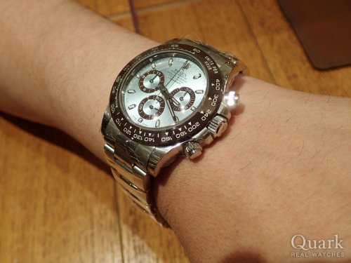 M様 いつもクォーク心斎橋店をご利用頂きまして誠にありがとうございます。先月に引き続きデイトナ最高峰のアイスブルーを2本ご購入頂きまして本当にありがとうございます。今回は、当初検討して頂いていたダイヤなしアイスブルーもタイミング良く入荷があり、ご案内出来た事を嬉しく感じております。これからも宮土がサポートしていきますので今後とも宜しくお願い致します。お近くに来られた際は、お気軽にお立ち寄り下さいませ。 クォーク心斎橋店 宮土