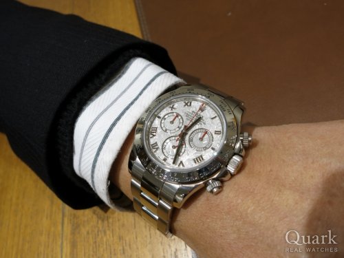 M様 いつもクォーク心斎橋店をご利用頂きまして誠にありがとうございます。今年4本目のご購入、本当にありがとうございます。お選び頂きましたDAYTONA・Ref.116509メテオライトは、廃番になってから流通量が少なくなってきている中、コンディションの良いお時計をご案内出来た事を嬉しく感じております。M様にとって幸運のパワーストーンになるように私もお祈りしております。末永くご愛用下さいませ。お近くに来られた際は、お気軽にお立ち寄り下さいませ。今後ともクォーク心斎橋店を宜しくお願い致します。