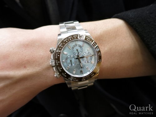 O様 この度は、クォーク心斎橋店をご利用頂きまして誠にありがとうございます。初ロレックスがスペシャルモデルのDAYTONAプラチナアイスブルーのダイヤ付をご購入頂き少し驚いております。お選び頂きましたDAYTONA・Ref.116506Aアイスブルーは、スポーツモデルの中でも最高峰のモデルでございます。プラチナにしか存在しないアイスブルーの文字盤がO様にすごくお似合いでした。ご案内出来た事を嬉しく感じております。また、何度も足を運んで頂き、長いお時間を頂きましてありがとうござます。末永くご愛用下さいませ。お近くに来られた際は、お気軽にお立ち寄り下さいませ。今後ともクォーク心斎橋店を宜しくお願い致します。