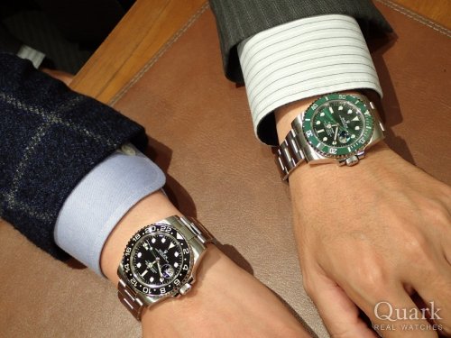 I様 この度はクォークをご利用頂きまして、誠にありがとうございます。以前より何度かご来店頂いておりましたが、念願のご購入に当店をお選び頂きまして光栄でございます。他のモデルは全く気にする事なく、まさに一目惚れを感じさせる決断でした。ご紹介頂きましたH様のGMTマスターIIへのこだわりはパイロットウォッチのイメージから空を連想し何事にも上昇していく時計とのお考えに対して、I様はダイバーズウォッチから海を連想し何事にも深くとのお話しもあり、ファッションや資産性だけではなくお選び頂けていることを嬉しく思いました。実用性も高い時計ですので、長くご愛用くださいませ。また、ブレス洗浄などお気軽にご来店下さい。今後ともクォーク心斎橋店もよろしくお願い申し上げます。
