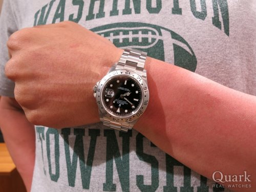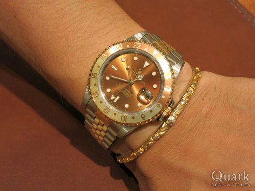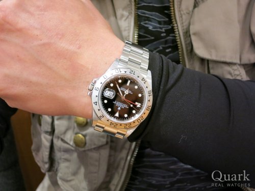 T様 この度はクォーク心斎橋店をご利用頂きまして、誠にありがとうございます。お探しになられていたとのことですが、気に入って頂け嬉しく存じます。GMTマスターIIのブラウンダイヤルは他のロレックスには見られない色目が特徴のモデルとなっております。また、コンビモデルではありますが程良い高級感で、Tシャツなどもに合わせて頂ける1本です。スポーツモデルでは珍しいジュビリーブレス付きですので、その雰囲気をご堪能頂ければ幸いでございます。気になる部分やご不明点などございましたら、お気軽にご連絡下さい。今後ともクォーク心斎橋店もよろしくお願い申し上げます。