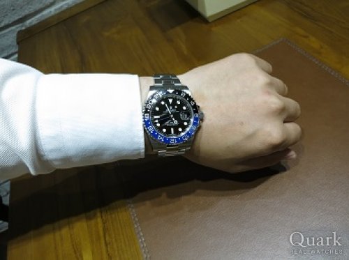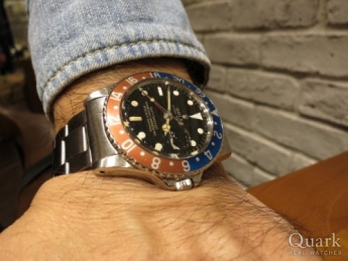 S様、いつもご利用頂き誠にありがとうございます。ご担当させて頂いてから2本目のGMTでございますね!今回の個体は、状態・価格のバランスが取れた非常に良い個体だと思います。S様の仰られる通り、程よくエイジングしたベゼルカラー、光沢のあるミラーダイヤルにゴールド書体など、全てが重なって出せるヴィンテージの雰囲気でございます。他に同じものが無い為、巡り合えましたのも何かのご縁ではないかと思っております。末永くご愛用頂けますと幸いでございます。アフターサービスにつきましては、何なりとご相談くださいませ。今後ともクォーク心斎橋店を宜しくお願い致します。 クォーク心斎橋店 店長 西口