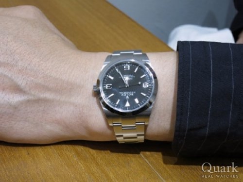 K様、この度はクォーク心斎橋店をご利用頂き誠にありがとうございます。エクスプローラーIは新旧共に人気が高く、非常に多くの方がお悩みになるモデルです。それぞれに良い点がありますが、K様の仰る通り視認性の高さは新デザインに軍配が上がると思います。オン・オフ問わず使いやすいデザインが魅力的ですね!末永くご愛用頂ければ幸いでございます。今後のサポートも私共が承りますので、何かございましたらお気軽にお申し付けください。ブレスレットの洗浄・調整も無料で行っておりますので、お近くにお立ち寄りの際はご依頼くださいませ。今後ともクォーク心斎橋店を宜しくお願い致します。 クォーク心斎橋店 山﨑