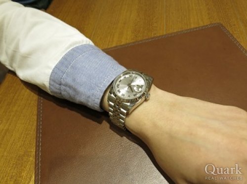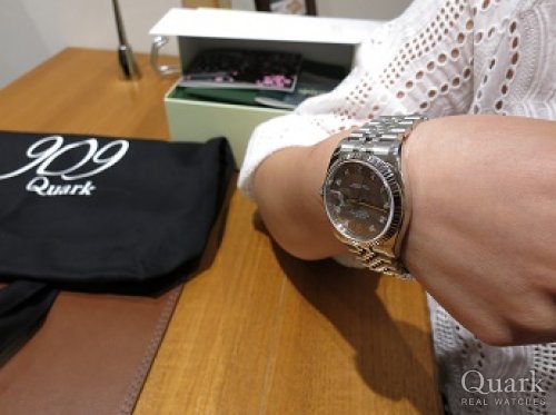 N様 この度はクォーク心斎橋店をお選びいただき誠にありがとうございました。ご購入いただきましたデイトジャストはロレックスを代表するモデルであり、ホワイトゴールドにグレーのローマ数字が映えてとても上品なモデルでございます。N様の雰囲気にもとてもよく合っていらっしゃいました。今後、メンテナンスなども含めしっかりとご対応させて頂きますので安心してロレックスライフをお楽しみくださいませ。また、次はお父様がご購入の際も是非お手伝いさせていただければと思っております。今後も末永いお付き合いを宜しくお願い致します。  クォーク心斎橋店 中野