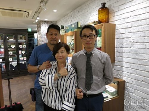 T様、この度はクォーク心斎橋店をご利用頂き誠にありがとうございます。迫力のあるデザインとケースサイズが魅力的なモデル、T様のファッションに大変マッチしておりました。これからの季節に腕周りのアクセントとして、活躍する事間違いなしです!私もご購入の後押しができ、大変うれしく思っております。ご使用頂きご不明な点等ございましたら、何なりとお申し付けくださいませ。また、お近くにお越しの際は是非お立ち寄り下さい。今後ともクォーク心斎橋店を宜しくお願い致します。 クォーク心斎橋店 山﨑