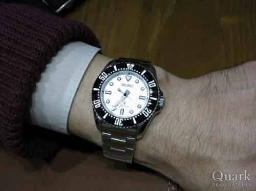 来年の消費税アップまでに、商品券やポイントをためて、セイコーのマスターショップで購入するつもりでしたが、たまたま見たクォークさんのブログで、自分の欲しいモデル・色、そのものずばりが、お買い得価格で紹介されていたので、即決して購入を決意しました。大満足の気分です。
