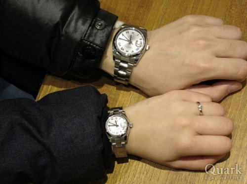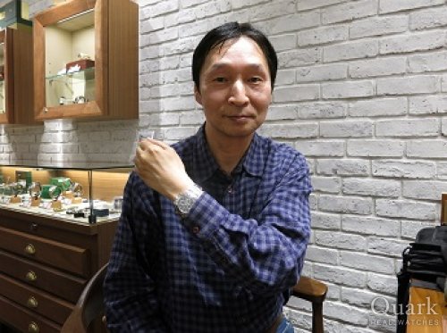 M様、この度はクォーク心斎橋店をご利用頂き誠にありがとうございます。そして、ご結婚おめでとうございます。「デイトジャスト」は様々なシーンでお使い頂け、ペアでの着用に最適なモデルです!記念すべきお時計のご購入の場に立ち会えて、私も嬉しく思っております。今後も末長くご愛用頂けますよう、しっかりとサポート致しますので何なりとお申し付けください。ブレス調整・洗浄も無料で承っておりますので、お近くにお越しの際は是非お立ち寄り下さいませ。今後ともクォーク心斎橋店を宜しくお願い致します。