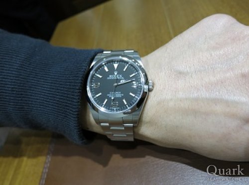 旧型の114270を着用していましたが、メンズモデルはケース径40mmが主流となり、36mmに物足りなさを感じ始めていました。39mmの新型エクスプローラーIが気になり、試着したところサイズ感にも満足でき、今回買い替えることにしました。