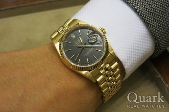 N様 この度は当店をご利用頂き、誠に有難うございます。スタンダードなデイトジャストですが、シルバー・グレーのツートンダイヤルは定番の使い易さだけに止まらず、デザイン性にも長けたモデルです。さらに年式も新しく、コンディションにも優れた商品をご案内でき、私も嬉しく感じております。今後末永くご愛用頂けます様、しっかりとサポート致しますので、何でもご相談ください。お時計とは関係ありませんが、息子さんのハキハキと挨拶される姿が印象的でした。非常に気持ちの良い挨拶を受けたのを覚えております。是非また一緒に遊びにいらしてくださいね。有難うございました。 クォーク心斎橋店 鈴木