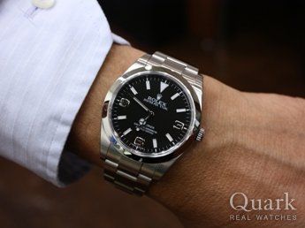 旧型エクスプローラーIを使っていましたが、先日息子に譲った為、自分用の時計を探していました。サブマリーナーと迷いましたが、スーツの時だけでなく普段にも使いたかったので色んなシーンで活躍するエクスプローラーIに決めました。3ミリ大きくなったので雰囲気が変わり、新鮮な気分です。