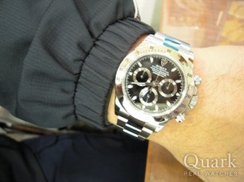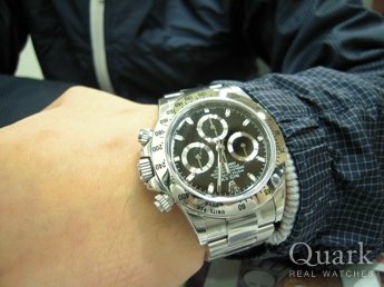 今回、1本目の時計を購入するということで後々、 後悔をしない時計を・・と考えていました。 サブマリーナーも良いかと思いましたが周りと かぶる可能性が高いので思い切ってデイトナにしました。 バーゼルフェアまで待とうかとも考えたのですが、 思いたったら買うべきだと思い購入しました!