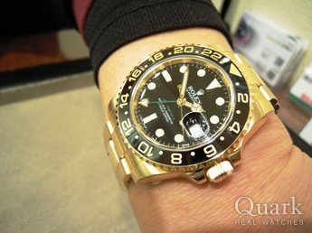 スポーツモデルで何か1本考えていました。 ロレックスカラーであるグリーンの24時間針がオシャレな GMTマスターIIが良いと思いお店に足を運びました。 サブマリーナーも考えましたがスーツにはちょっと合わないかなぁ・・と。 セラミックベゼルの高級感、オンオフ両方使えるモデルということが 決め手となりました!