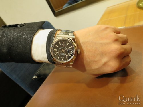 T様、この度はクォーク神戸店をご利用頂きまして誠に有難うございました。ご購入頂きましたスカイドゥエラーRef.326934(黒)は、2017年のバーゼルワールドにて発表され、これまで金無垢モデルのみのラインナップから新しくステンレスモデル(ホワイトゴールドベゼル)として登場致しました。今尚入荷が難しいプレミアムモデルです。年次カレンダーなどの優れた機能性はもちろん、見た目にも美しく着用時の優越感は他のステンレスモデルには無い所です。お持ちの方もまだ殆どいらっしゃらないと思いますので、ロレックスに詳しい方なら驚かれ、羨望の眼差しで見られることかと思います。とてもお似合いでカッコ良かったです!!末永くご愛用頂けましたら幸いです。色々なお店もある中、クォーク神戸店にご依頼頂き本当に有難うございました。今後もご指名頂けるようしっかりとサポートさせて頂きますので、何かご要望などございましたら私井内までお申し付け下さいませ。また、ブレスレットの洗浄及び調整も無料で行っておりますので、お近くに来られた際には是非遊びにいらして下さい。心よりお待ちしております。 クォーク神戸店 井内