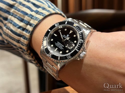 T様、いつもクォーク仙台店をご利用いただきまして誠にありがとうございます。T様がお選びになられた『Ref.16610』は、サブマリーナーデイトシリーズの中で最も長い期間生産された人気モデルでございます。約20年間の生産期間の中で様々なマイナーチェンジが行われましたが、その中でも今回T様がお選びになられた個体は、近年セミヴィンテージ世代として評価が高まっている、夜光塗料にトリチウムが施されている個体で、ケースやベゼルのポリッシュ感がとても少なく、パリっとエッジが立った迫力のある1本でございます。これから末永くご愛用いただけましたら幸いでございます。また、お褒めのお言葉をいただきましたこと重ねて御礼申し上げます。今後もT様のご期待に応えられるよう、日々精進して参ります。尚、ご使用に際して気になる点がございましたら、しっかりサポートさせていただきますので、お気軽にお申し付けくださいませ。どうぞ、今後とも変わらぬご愛顧を賜ります様、よろしくお願い申し上げます。 クォーク仙台店 沼澤